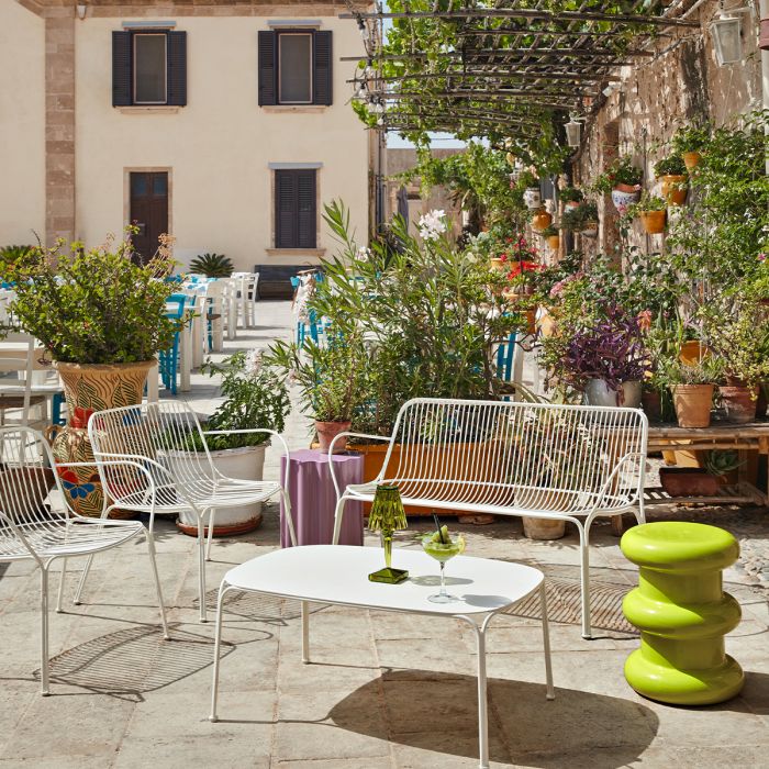 HIRAY joue avec le métal, l’un des matériaux les plus importants dans la redéfinition écologique du catalogue Kartell, en le travaillant avec la technique du fil soudé. Le résultat est un motif essentiel et fonctionnaliste, également imprégné d’émotion. Les fils de métal dessinent des pièces à la structure bien définie mais légère comme des chaises, des chaises avec accoudoirs, des tables de bistrot, des fauteuils, des canapés et des tables d’appoint.