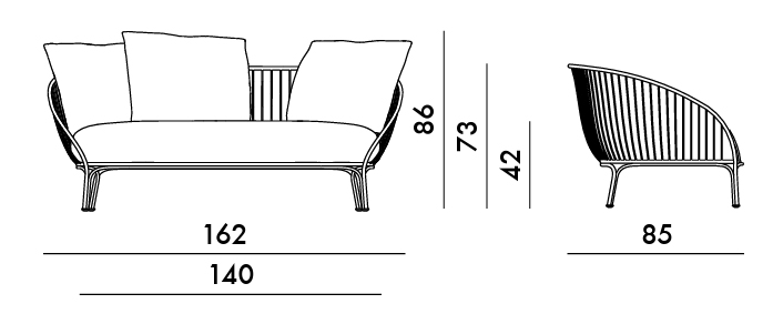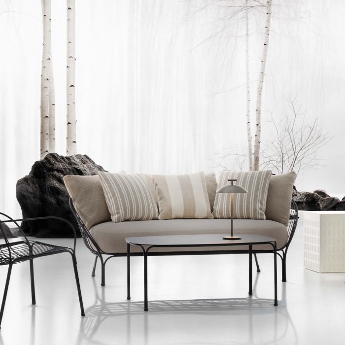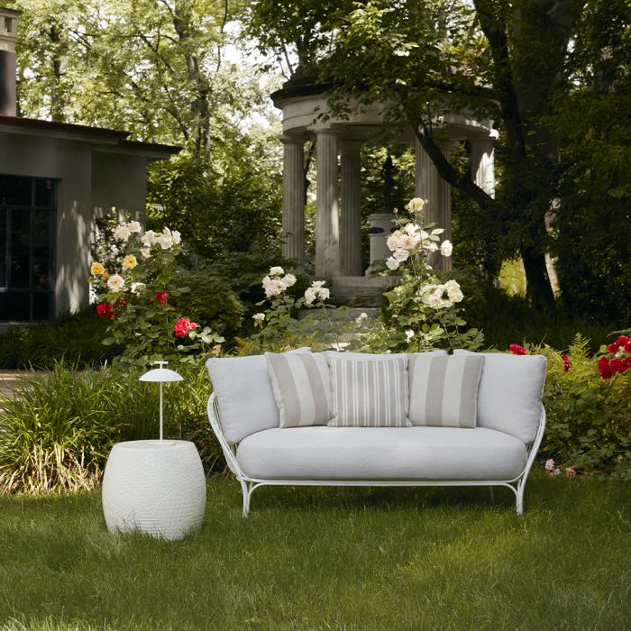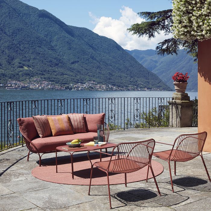 La famille HiRay de Ludovica Serafini + Roberto Palomba s’agrandit avec un nouveau projet : le canapé aux formes plus généreuses assorti de coussins plus épais qui rendent l’assise encore plus cosy et souple. La nouvelle version du canapé est conçue pour offrir une expérience plus lounge et confortable. Tout le souci du détail apporté à cette nouvelle version garantit un confort optimal, tant dans les environnements résidentiels que dans les espaces du segment Contract. Les textiles recherchés font de ce produit extrêmement particulier un meuble adapté à toutes les occasions en extérieur. Le canapé est disponible en blanc, noir, rouille et vert. La collection complète se compose d’un petit canapé, d’un fauteuil, d’une table d’appoint, d’une chaise, d’une table bistrot, d’une table haute et d’un tabouret.