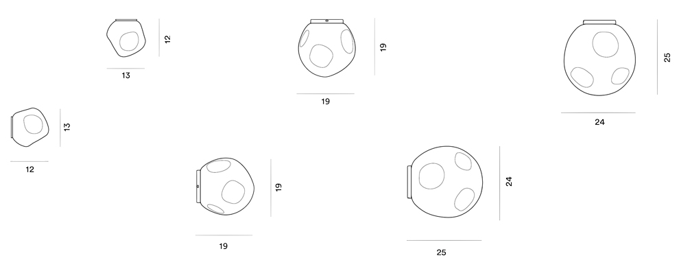 Réalisés en verre soufflé mat, les plafonniers Hoba ont une forme asymétrique et irrégulière qui rappelle une météorite cristallisée au moment de son envol. Elles diffusent une lumière chaude et enveloppante.