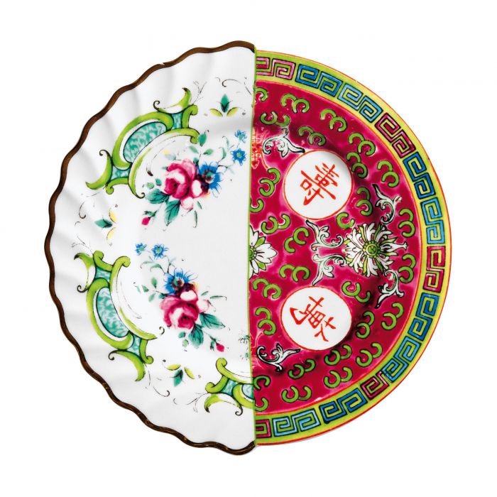 Le projet de vaisselle du designer CtrlZak pour la marque Seletti est une réflexion sur la production de porcelaine fine chinoise et européenne. Les assiettes sont fabriquées à Tangshan, qui est renommée comme étant la capitale de la porcelaine fine. Chaque assiette est coupée en deux et cela crée des compositions hybrides où on retrouve une juxtaposition de scènes et de thèmes interprétés dans les traditions locales Une assiette Hybrid qui mélange l'art asiatique et l'art occidental. Une double forme un côté de style baroque et de l'autre un côté plus contemporain. L'assiette Hybrid est réalisée en porcelaine Bone China, une porcelaine fine et élégante. Pour un rendu irréprochable, la finition de cette collection Hybrid est entièrement réalisée à la main. Cette assiette originale et colorée décorera votre table avec une touche design et raffinée.