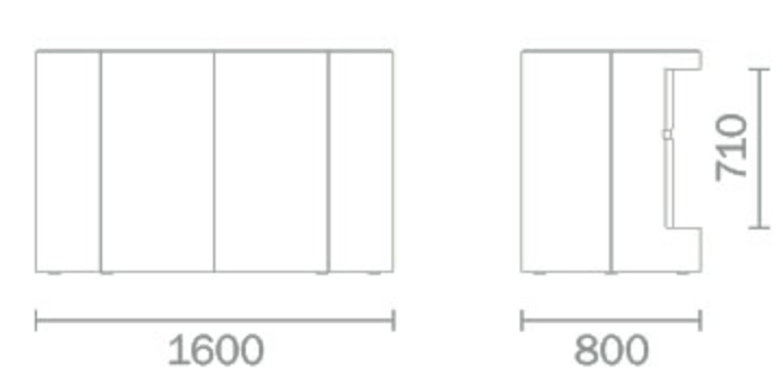 Les modules, dont la forme constitue un double pentagone, sont approchables pour composer des formes infinies dans les dimensions souhaitées. Sont inclus des tablettes internes et un plateau pour compléter la partie supérieure. Il peut être aussi équipé d’une installation d’allumage qui le transforme dans une composition lumineuse et suggestive.