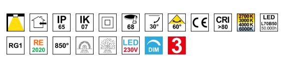 Spot encastré rond orientable 4 en 1 Iena RDX-230 de Indigo Lighting.