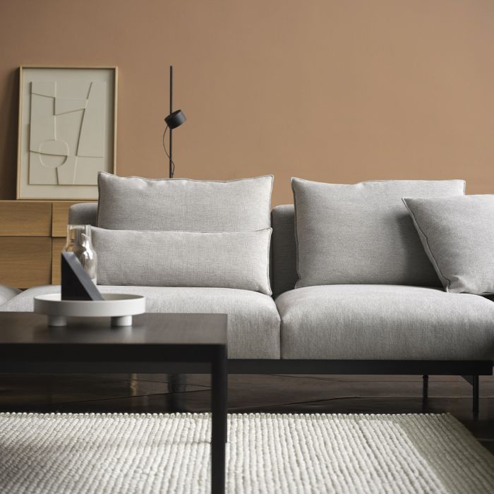 Structure en acier thermolaqué. Modules dans une construction en bois certifié FSC™️ (FSC-C028824) avec mousse et ouate. Intextile rembourré de Kvadrat ou Rohleder.