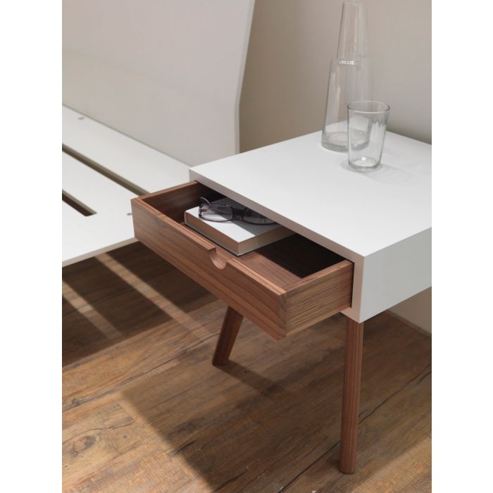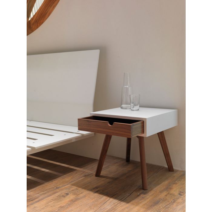 Une table de nuit avec tiroir tout en bois, pour un côter pure et naturel.Dans l'espace jour au contraire Io e Te se transforme en une agréable petite table de service avec tiroir complètement extractible qui le cas échéant peut servir de plateau pratique.