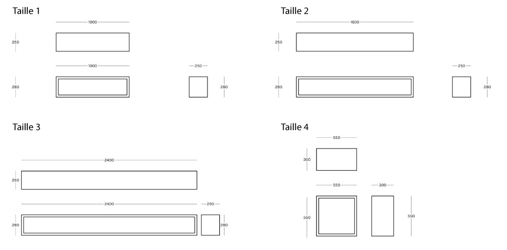 Taille 3 : L 240 x Prof. 25 x H 28 cm