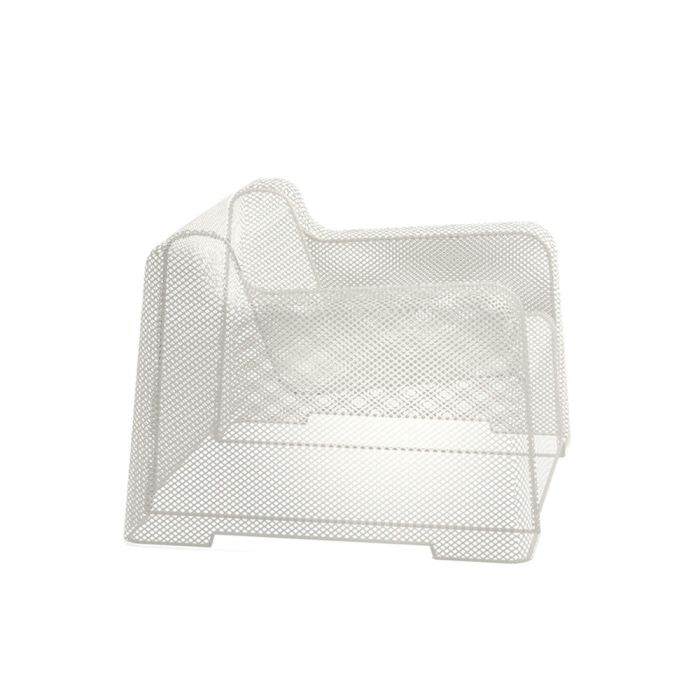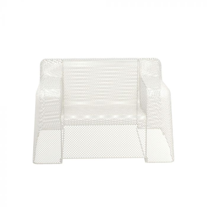 Fauteuil Ivy de Emu aux formes moelleuses et arrondies, structure extrêmement solide, réalisée par emboutissage de tôle étirée avec structure en baguette métallique.