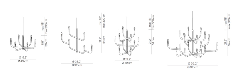 J-us naît d'une interprétation insolite du lustre traditionnel à bras, où l'innovation technologique et la recherche sur les matériaux sont complètement dissimulées. Les performances lumineuses chaudes et remarquables et le design léger et dynamique d'un grand attrait visuel donnent aux pièces un ton raffiné sans jamais surévaluer l'image.