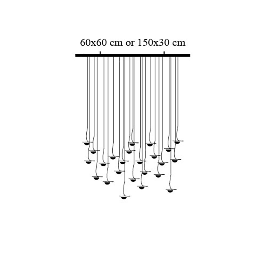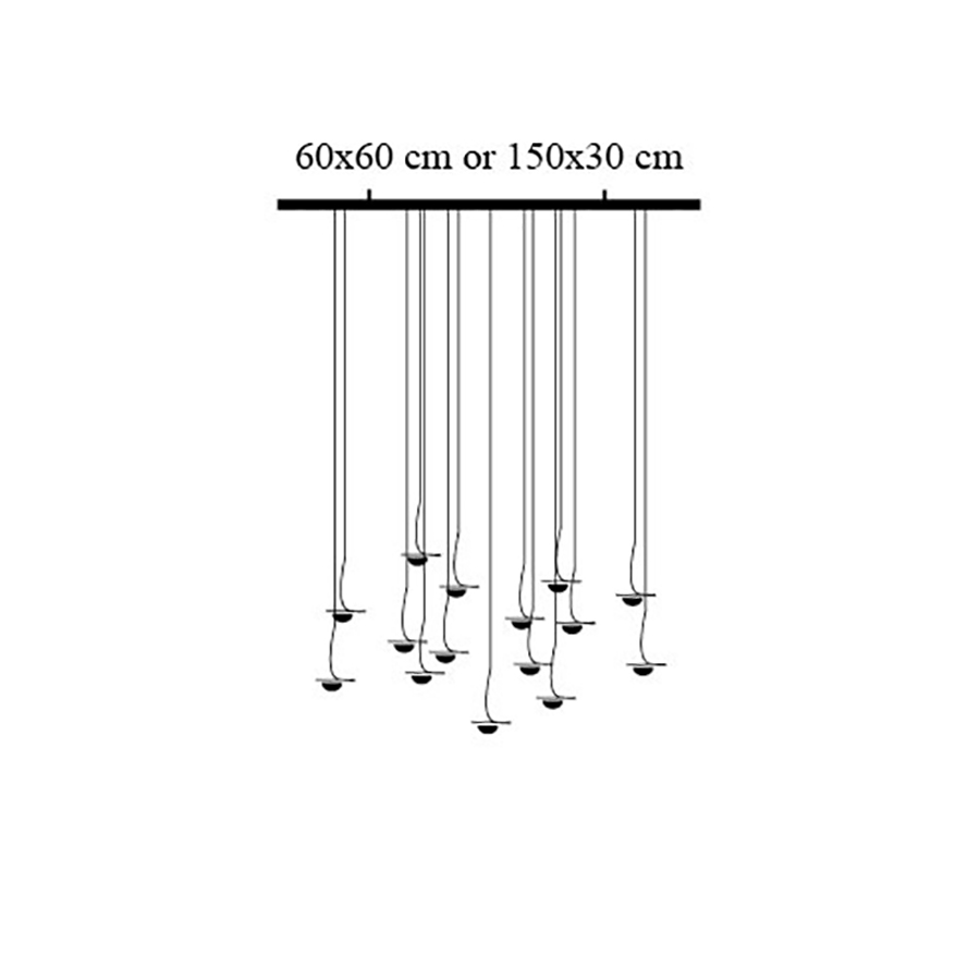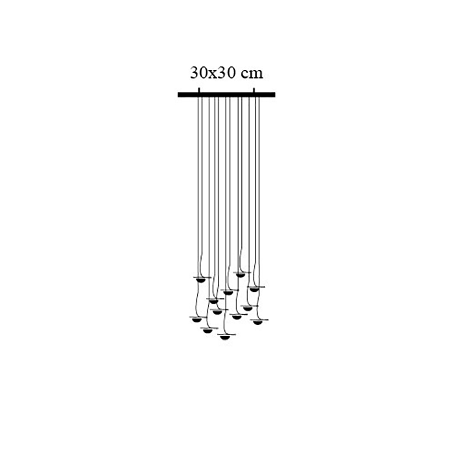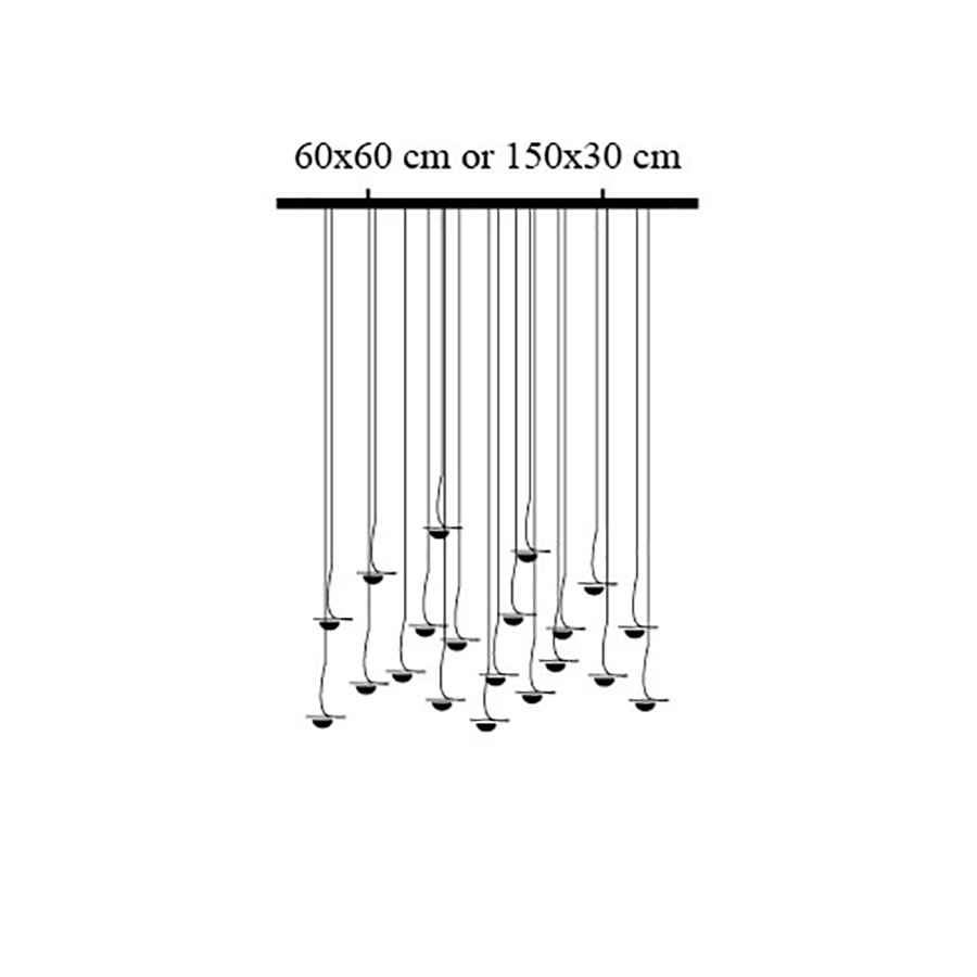 Sources (fournie) : LED 1W 350 mA, consommation selon le nombre de suspension, flux lumineux 600-2400 lumens, 2700°K, 220-240V