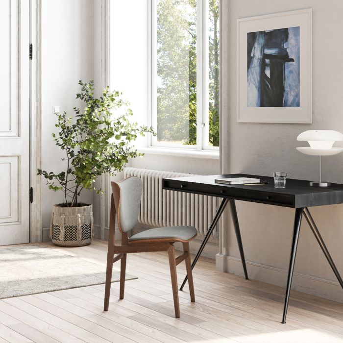 Le compagnon idéal pour le bureau ou le bureau à domicile orienté vers le design. Avec son design pur et simpliste, le bureau JFK, inspiré des années 60, est idéal pour les bureaux orientés design et les bureaux à domicile. Le bureau est doté d'un plateau mince en frêne avec trois tiroirs intégrés et d'un espace caché pour une banque d'alimentation, ce qui facilite l'alimentation d'un ordinateur portable, d'une lampe de table ou d'un smartphone.