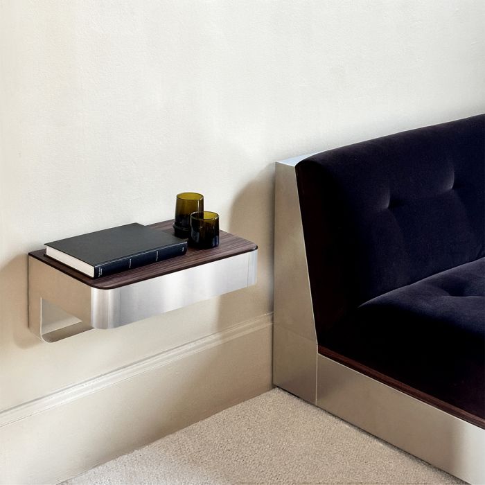 Judd est une étagère murale d'inspiration art moderne, conçue pour se fixer au mur, en lévitation. Aérienne, monobloc, elle allie grâce et modernité avec ses formes galbées et ses courbes parfaitement dessinées. La chaleur de son plateau en bois palissandre vient réchauffer l'inox poli. Dotée d'un tiroir coulissant intégré, elle renferme un espace de rangement fonctionnel. Versatile dans ses utilisations, elle trouvera facilement sa place sur les murs de vos intérieurs. Elle pourra faire office au choix de console dans une entrée, un salon, ou encore table de chevet dans une chambre.