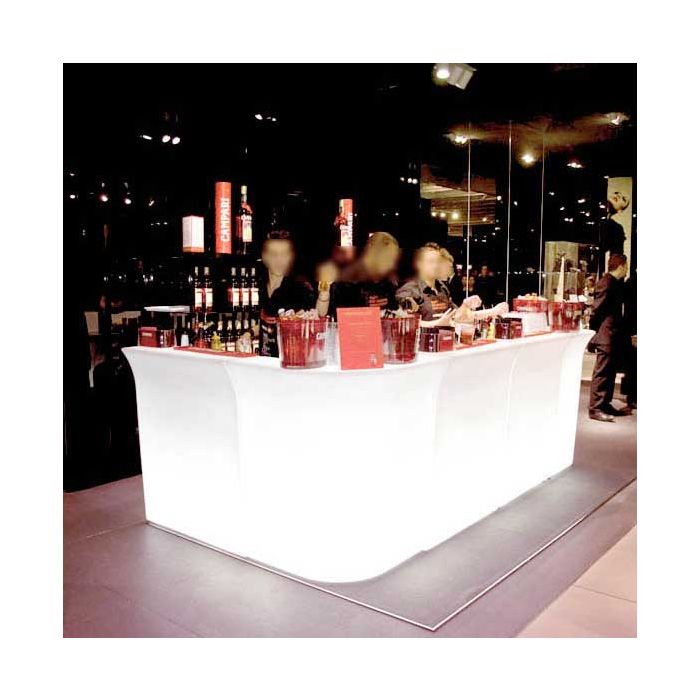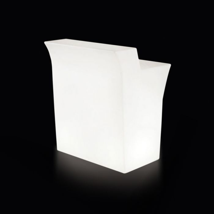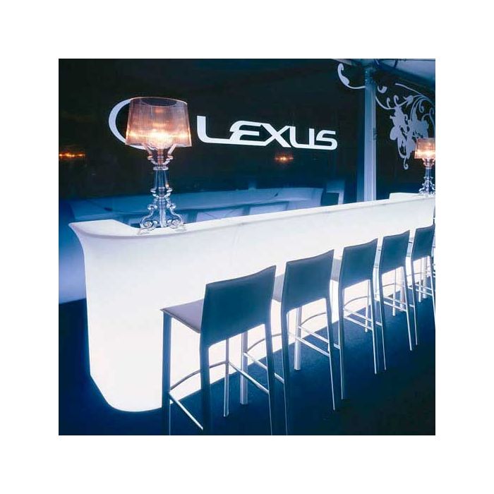 Ce bar lumineux crée une ambiance lounge exceptionnelle et ultra contemporaine dans votre salon, sur votre terrasse, au bord de votre piscine... La forme épurée et translucide laisse s'échapper un halo lumineux doux et sensuel qui illuminera vos apéritifs, vos soirées entre amis... Une invitation à prolonger l'intimité de la soirée jusqu'au bout de la nuit ! Vous avez la possibilité de changer d'ambiance en variant la couleur des ampoules. Jumbo Bar est très fonctionnel : léger, résistant, il est muni d'un espace de rangement encastré.