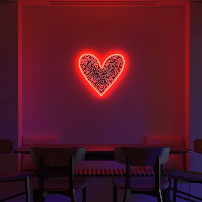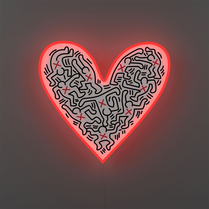 Célébrez la danse et l’amour avec cette oeuvre issue de la collaboration Yellowpop x Keith Haring. Le motif iconique de l’artiste est au centre du néon et vous pouvez profiter de son énergie ludique et optimiste à tout moment et dans n’importe quel espace. Le coeur néon qui l’entoure est composé de lumières LED qui peuvent être ajustées ou intensifiées en fonction de votre humeur.