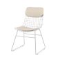 Kit confort pour la chaise en fil. Le kit confort se compose d’un oreiller pour le dossier et le siège. À l’intérieur de l’oreiller, il y a des morceaux de ruban velcro avec lesquels l’oreiller peut être fixé au siège de la chaise.