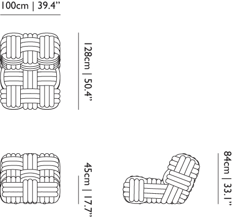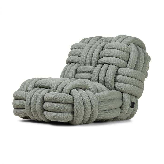 Offrez-vous une détente ultime avec la chaise longue Knitty de Nika Zupanc. Cette chaise longue plus grande que nature est un véritable sujet de conversation dans votre maison. Un accroche-regard fabriqué avec un «fil» extra-large qui ressemble à des cordes de bateau géantes. Le design de la chaise est encore amélioré avec un tissu tricoté, disponible en 15 couleurs, qui présente un motif de losanges matelassé. Autour d'une base solide, le fil est tissé dans une grosse armure de panier, offrant une sensation tactile inégalée. La combinaison unique d'échelle et de douceur de la chaise longue Knitty vous fera vous blottir avec votre livre ou série préféré et vous laissera aller à une relaxation ultime. Configurez la chaise longue Knitty dans la couleur de votre choix avec le configurateur en ligne et découvrez à quoi elle ressemble dans votre maison avec AR !
