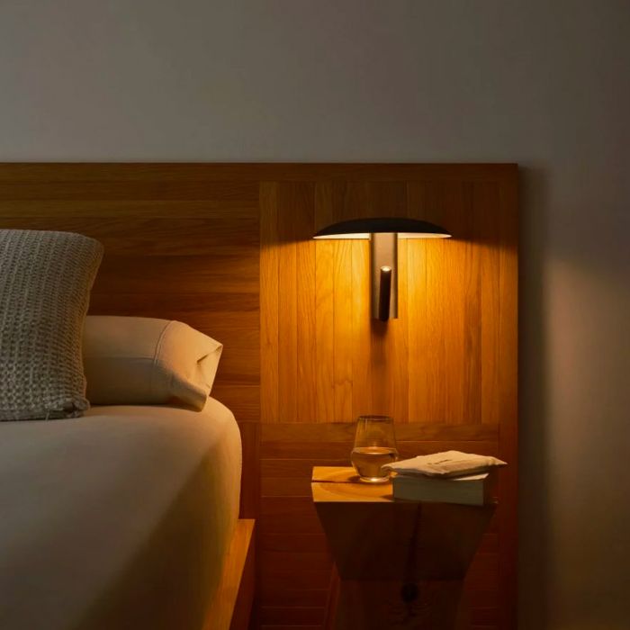 Konoha de Marset par Yabu Pushelberg. Pour les designers George Yabu et Glenn Pushelberg, le design consiste à raconter des histoires. C'est certainement le cas de leur nouveau modèle Konoha, une applique murale à double fonction qui nous indique de quels types d'éclairage nous avons besoin autour de nous et offre toutes les possibilités nécessaires pour les réaliser. Par curiosité et analyse, les designers ont pris en compte un certain nombre de variables, notamment celles liées à nos émotions ; la lumière est sans doute l’élément le plus intime d’un environnement, sa conception doit donc être réfléchie, fonctionnelle et utile. Le studio de design Yabu Pushelberg, mondialement connu pour ses nombreux projets hôteliers, estime que l'éclairage des chambres d'hôtel est souvent redondant. Chaque pièce a besoin de lumière directe et ambiante, c'est pourquoi ils ont choisi d'inclure les deux fonctions dans un seul design. Le résultat est une applique simple et discrète avec un abat-jour sur un spot orienté qui tourne à 360°. L'abat-jour, tel un chapeau, recouvre le projecteur, permettant à la lumière d'être dirigée vers le haut, de rebondir sur l'intérieur et de projeter un faisceau de lumière douce, créant un éclairage d'ambiance chaleureux. Si, au contraire, le projecteur est orienté vers le bas, il projette un faisceau de lumière directe, transformant l'appareil en lampe de lecture. Le design Konoha est disponible dans une gamme de couleurs, avec des nuances neutres et organiques qui s'intègrent parfaitement à n'importe quel espace. Elle peut être utilisée comme lampe de lecture dans les salles d'attente, les chambres ou les hôtels. Il peut également s'agir d'un point lumineux dans les allées, d'une applique murale dans les restaurants ou d'un moyen d'apporter un éclairage d'ambiance aux entrées d'un hôtel. Konoha invite les utilisateurs à interagir avec sa lumière et à l'utiliser tout au long de la journée.
