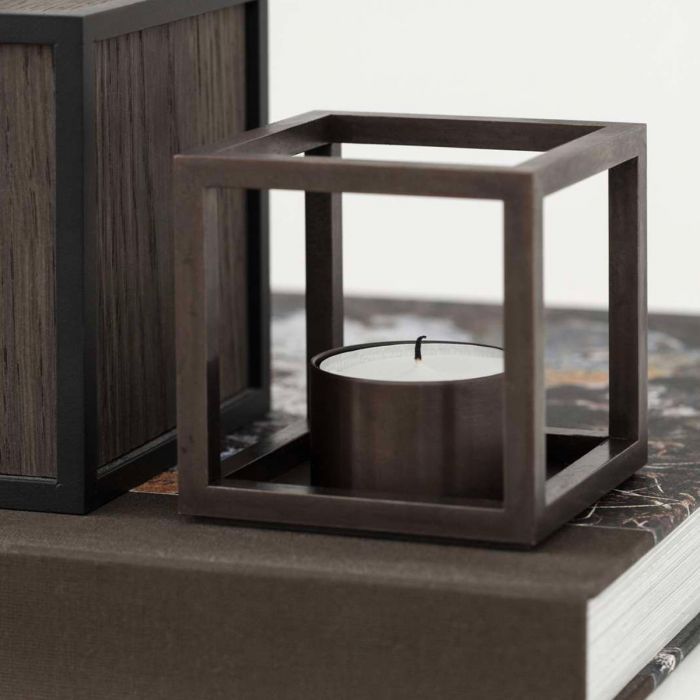 La bougie chauffe-plat Kubus T est ajoutée à la collection Kubus en 2018, conçue par Sarah Abbondio. Rigueur simpliste et graphique sont les maîtres mots décrivant le bougeoir. Choisissez les versions classiques à revêtement en poudre, le cuivre bruni brut, qui au fil du temps s'assombrit magnifiquement, le laiton ou la belle version en nickel brillant, qui est chaud et unique dans son éclat - ou combinez-en plus pour une belle nature morte sculpturale sur le rebord de fenêtre ou sur la table du dîner.