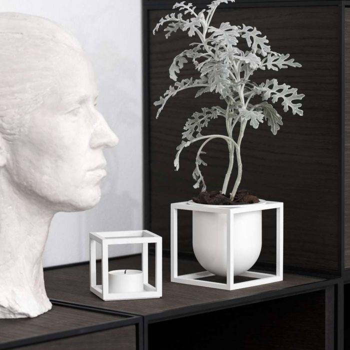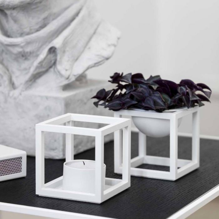 La bougie chauffe-plat Kubus T est ajoutée à la collection Kubus en 2018, conçue par Sarah Abbondio. Rigueur simpliste et graphique sont les maîtres mots décrivant le bougeoir. Choisissez les versions classiques à revêtement en poudre, le cuivre bruni brut, qui au fil du temps s'assombrit magnifiquement, le laiton ou la belle version en nickel brillant, qui est chaud et unique dans son éclat - ou combinez-en plus pour une belle nature morte sculpturale sur le rebord de fenêtre ou sur la table du dîner.