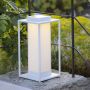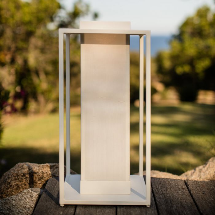 La version solaire de la grande lanterne à bougie. Nomade, elle vous suivra à l’extérieur comme à l’intérieur. Grâce à son tissu tendu, cette lampe solaire décorative d’extérieur diffuse un halo de lumière douce pour créer une atmosphère chaude. Son cadre en aluminium laqué de couleur charbon ou blanc est habillé d’une chaussette en tissu enduit blanc cassé et imperméable. Jusqu’à 9 heures d’éclairage.