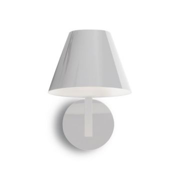 Un archétype, abat-jour en équilibre sur une tige inclinée. De simples éléments unis d’une manière élégante pour étonner par leur composition géométrique correspondent à des formes élémentaires associées à des matières différentes pour des raisons technologiques.Le savoir-faire d’Artemide s’exprime même dans une lampe apparemment si simple et essentielle. L’abat-jour est un léger volume plastique fermé par deux diffuseurs qui produisent une lumière agréable, douce, directe et indirecte. Le joint maintient l’abat-jour sur un point d’appui minimal en le reliant à la tige en aluminium. Ces quelques éléments définissent un ensemble simple et élégant où l’inclinaison de la tige est équilibrée par le volume de l’abat-jour.