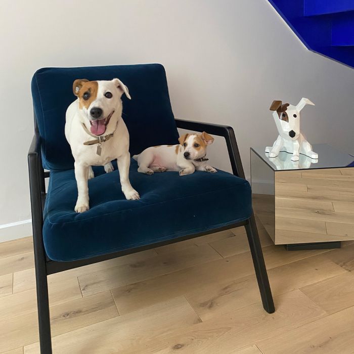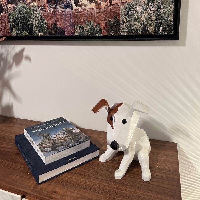 La Statue Lady Dog est une création emblématique d'Artypopart, imaginée par le designer français SJ. Cette sculpture en résine représente un chien Jack Russell dans une posture vive, adoptant un style géométrique et polygonal qui rappelle l'art de l'origami. Loin de la simple figurine, Lady Dog est une œuvre décorative moderne, caractérisée par des lignes pures et nettes, et une finition laquée qui capture la lumière. Tendance et ludique, elle est l'incarnation d'un design contemporain qui allie l'amour des animaux à une esthétique minimaliste et tranchée.