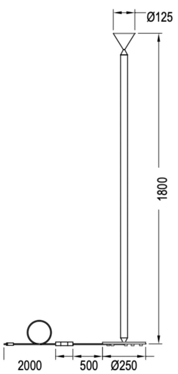 H 180 x diam. base 25 x diam. abat-jour 12,5 cm