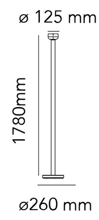 Lampadaire à lumière indirecte. Base en ciment. Tige en aluminium laqué blanc, brique, cioko, vert. Réflecteur en verre soufflé blanc et gris brilant opalin. Câble électrique longueur utile 270 cm, avec interrupteur variateur à pédale qui assure les fonctions ON/OFF et le réglage du flux lumineux 10-100%. Alimentation sur prise avec plug interchangeables.