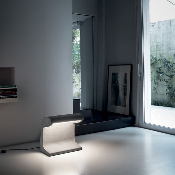 Lampadaire en béton extérieur et intérieur, conçu pour l'Unité d'habitation de Marseille et pour le barrage de Bhakra, Sukhna Dam en Inde en 1952. Chaque lampe est un produit artisanal: de petites différences esthétiques et de finition entre une lampe et l'autre unique.