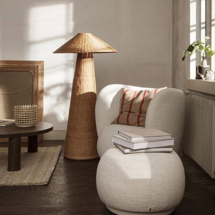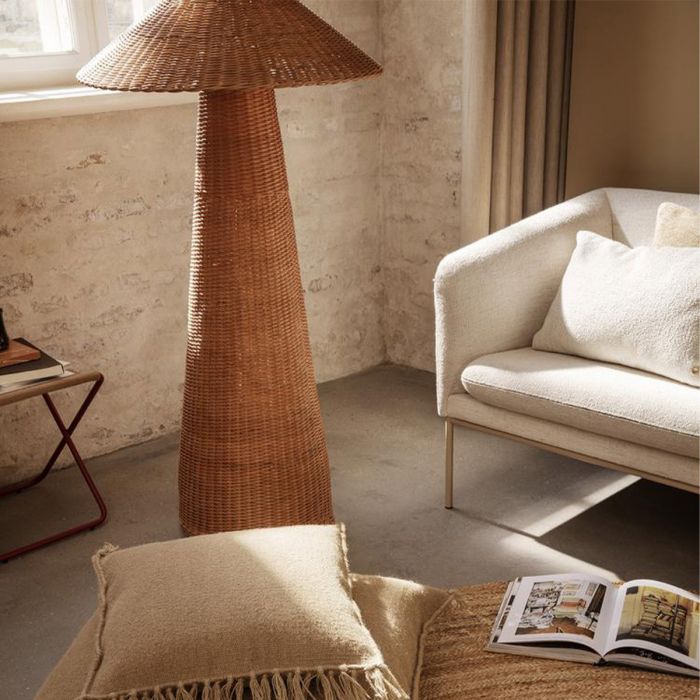 Tressée à la main en rotin naturel, notre série Dou célèbre le joli contraste entre les formes géométriques et les qualités organiques et texturales du matériau. Ce lampadaire présente des dimensions surdimensionnées et une lumière douce et confortable, tandis que l'abat-jour permet de petits aperçus d'éclairage à travers le rotin tressé, et ajoutera de la texture et de la tactilité à votre espace de vie.