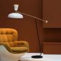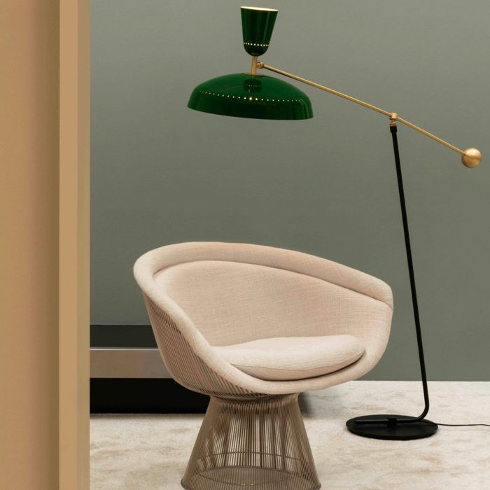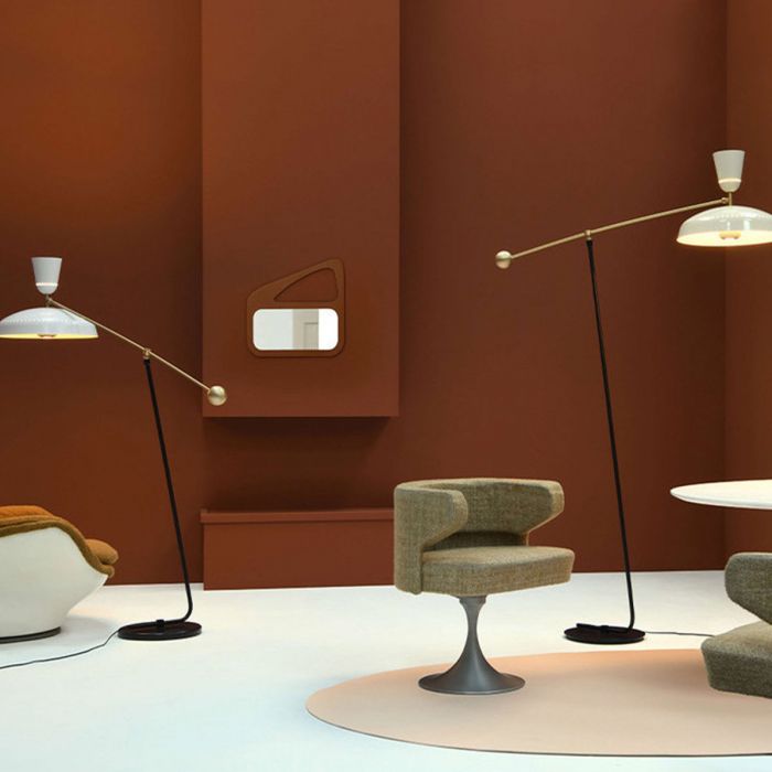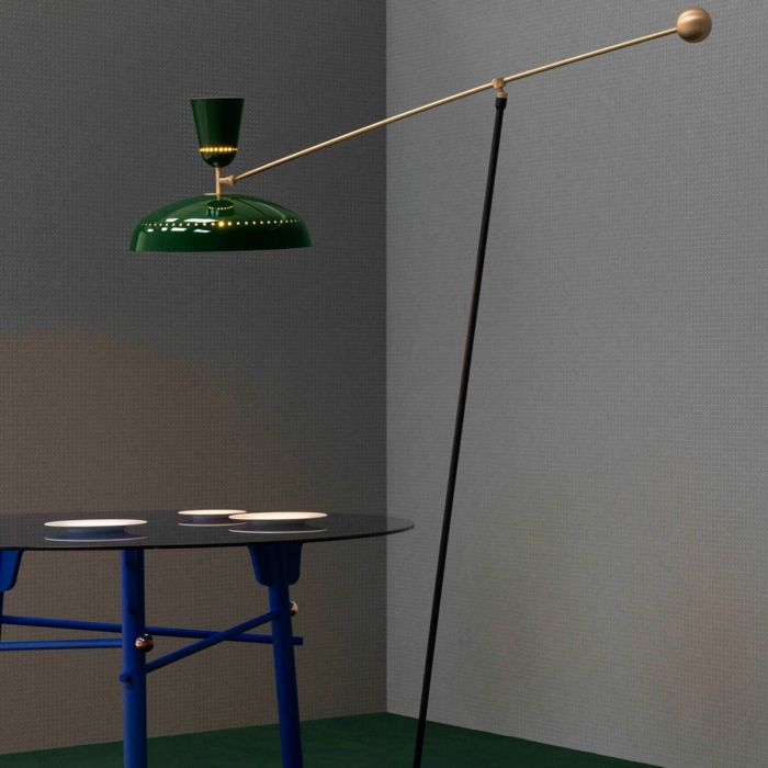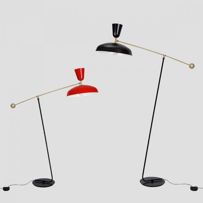 Disponible en deux tailles, ce lampadaire majestueux et intemporel fut dessiné par Pierre Guariche en 1951. Modèle emblématique des luminaires créés par le designer, il se distingue par un abat-jour en métal repoussé et deux sources lumineuses apportant un éclairage direct et indirect. Orné d’une boule de laiton massif pour contre-poids, son bras également en laiton repousse les limites de la gravité. C’est tout en légèreté que vous pourrez orienter la lumière au fil de votre journée. Sa version grande dite « Large » – hauteur 1m75 – est idéale pour éclairer la surface d’une table. En petite version – 1m20 –, il sera parfait pour un coin lecture ou un espace de détente. Son abat-jour spectaculaire est mis en lumière par deux ampoules pour un éclairage homogène et confortable. Quatre finitions s’offrent à vous : rouge vermillon, noir, blanc et craie, à vous de choisir celle qui viendra sublimer votre intérieur ! Existe aussi en versions applique et suspension. Tous nos luminaires sont fabriqués, assemblés et emballés dans notre usine à Châtillon-sur-Saône dans les Vosges.