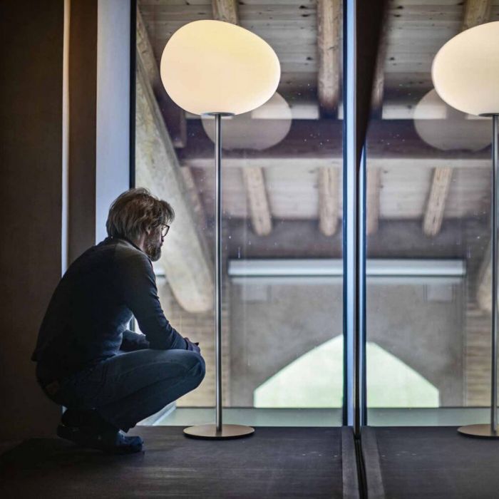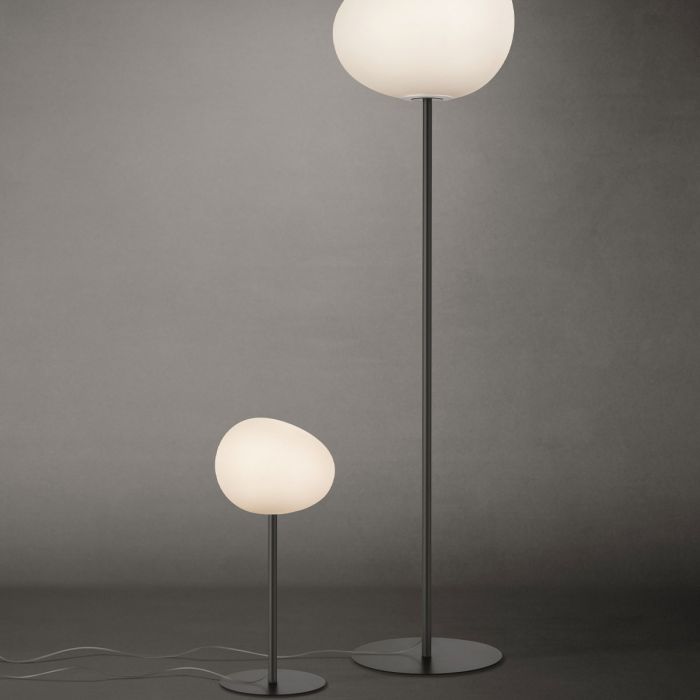 La forme de Gregg rappelle celle d’une grande pierre polie par l’eau. Réalisée en verre soufflé à la bouche, cette lampe fait partie du système Mix&Match et est disponible dans 2 dimensions et 3 couleurs différentes qui peuvent être combinées facilement, pour définir et coordonner l’éclairage de différents espaces.