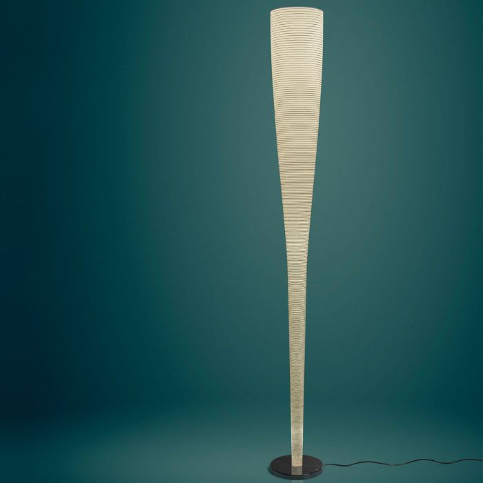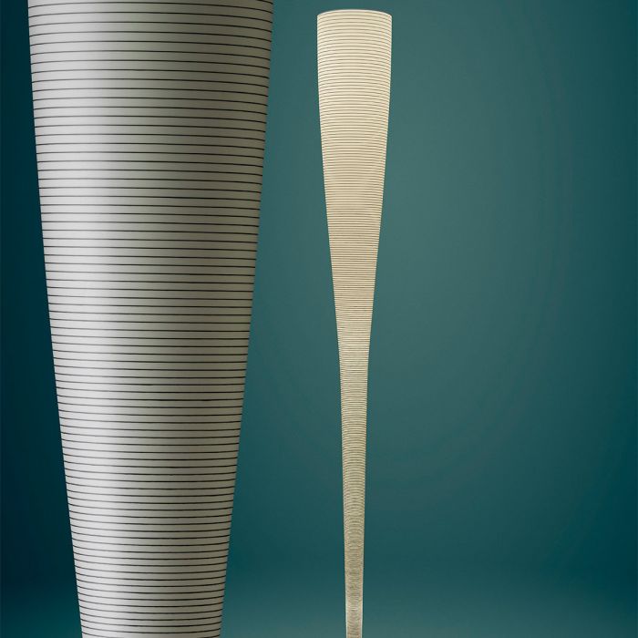 Le volume de la lampe est identique à l'original, mais le fil de carbone est beaucoup plus fin, monté sur une spirale plus large qui se densifie en convergeant vers la base; ce dernier est en marbre noir raffiné, tacheté de veines blanches et gris pâle. La finition du corps de la lampe est mate plutôt que brillante, un choix qui souligne plus précisément l'élégance de l'effet décoratif. Les nouveautés de Mite Anniversario ne sont pas seulement de nature esthétique, mais surtout technologiques et pertinentes pour la lumière produite par la lampe. Avec Mite Anniversario, la partie éclairage a été améliorée en appliquant les dernières innovations en matière de LED sector. Un nouveau système de panneaux LED offre une distribution lumineuse plus large dans l'environnement et un éclairage complet du diffuseur, augmentant l'efficacité et diminuant la consommation en même temps.