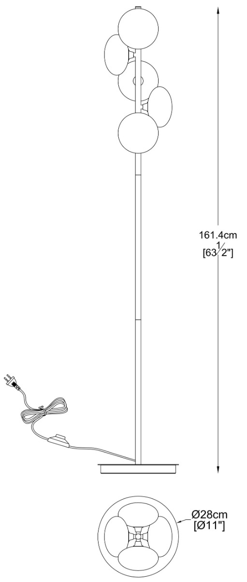 Sources (non fournie) : G9 5 x LED 5W max ou 5 x 28W max (éc-halogène)