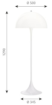 Créé en 1971, Panthella est l’une des créations les plus célèbres de Verner Panton. Le principe d’éclairage de base visait à créer une lampe dont la base et l’abat-jour faisait office de réflecteur. La source lumineuse des lampes est cachée derrière un abat-jour hémisphérique en acrylique blanc laiteux et une base blanche en forme de trompette contribue à une superbe distribution de la lumière ainsi qu’à une forme bien équilibrée et organique. Panthella émet une lumière douce et agréable, dirigée vers le bas.