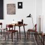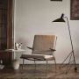 Le trépied de 1953 reflète le minimalisme épuré des maîtres anciens Hvidt & Mølgaard. Lampadaire construit en acier laqué avec des détails en laiton, il établit un équilibre délicat entre la sobriété de son design et la douceur injectée par les bords incurvés de sa base. Bien qu'il ait été conçu en 1953, c'est la première fois qu'il est en production.