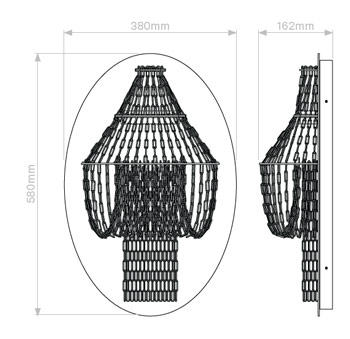 Conservant la forme et le galbe d’un modèle classique, ce chandelier en chaines, hors norme, perpétue la magie de la lumière. Sans verre, ni cristal, la lumière vient se poser pour faire scintiller des gouttelettes de lumière sur les 6400 maillons d’inox.