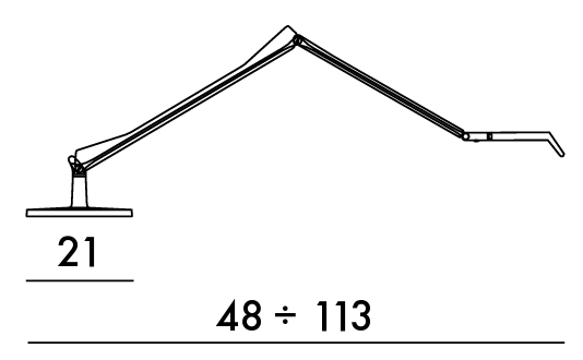 Lampe de bureau LED signée Alberto et Francesco Meda. Ce modèle a un cœur technologique et des bras en aluminium servant de conducteurs à la place du câble. La couleur unie noir et blanc vient compléter la version classique transparente Tec.