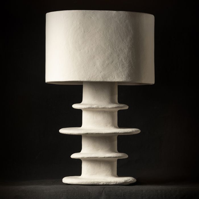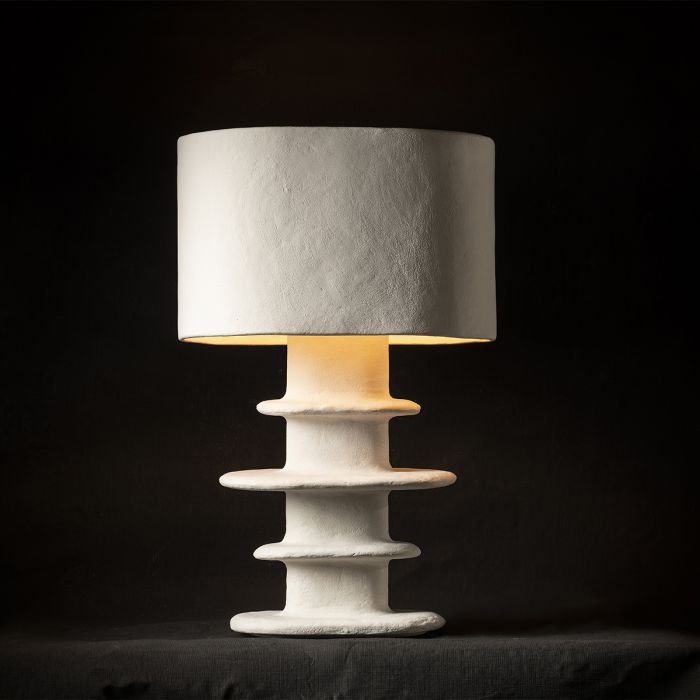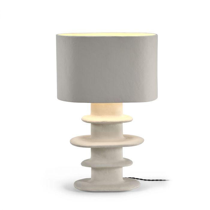 La lampe Earth édition 2024, plus grande que les modèles précédents, est entièrement réalisée en papier mâché. Son pied modelé à la main, qui rappelle les vases en céramique Billy sortis précédemment, capture la lumière d'une manière magique. La texture et la couleur du papier mâché confèrent toujours une touche artistique aux objets.
