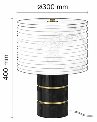 La lampe Verona incarne une élégance architecturale et intemporelle, où la matière devient lumière. Son abat-jour cylindrique en albâtre naturel d’Espagne, délicatement strié, diffuse une lueur douce et enveloppante qui révèle la richesse minérale de la pierre. Chaque veinage, chaque nuance ivoire ou dorée est unique, faisant de chaque pièce un objet singulier. La lampe repose sur un pied en marbre noir, rehaussé d’une structure en laiton aux lignes épurées. Cette combinaison de matériaux nobles — albâtre, marbre et laiton — crée un contraste subtil entre lumière minérale et profondeur graphique, conférant à Verona une véritable présence sculpturale. Pensée comme un objet décoratif autant qu’un luminaire, Verona structure l’espace avec sobriété et caractère. Elle trouve naturellement sa place sur une table de chevet, une console, un bureau ou un meuble d’appoint, aussi bien dans un intérieur résidentiel que dans un environnement hôtelier ou professionnel.