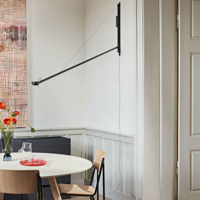 Lampe murale Fifty-Fifty de Hay. Nommé Fifty-Fifty d'après le système de contrepoids de la lampe qui crée un équilibre entre les deux parties, il est clair de voir comment les références de Sam Weller à la physique et à l'ingénierie influencent la conception. Basé sur l'idée de dépouiller une lampe de bureau polyvalente de ses éléments fondamentaux, Fifty-Fifty équilibre une esthétique raffinée et épurée avec une fonctionnalité optimale. Cette plus grande et dernière addition à la famille Fifty-Fifty, la lampe murale utilise la plupart des mêmes composants que le reste de la famille, avec des composants en aluminium configurables et des supports muraux et un contrepoids en acier robustes. Le bras en porte-à-faux extrudé est facile à incliner et à pivoter, avec un variateur tactile pour positionner et contrôler avec précision la source de lumière LED intégrée. L'applique murale Fifty-Fifty convient pour une utilisation dans les bureaux, les espaces publics.