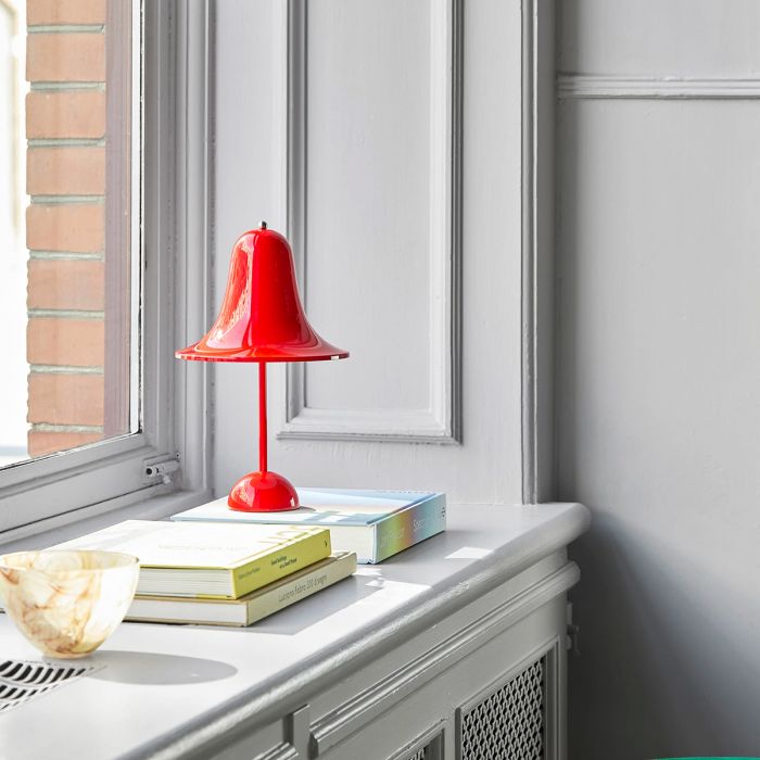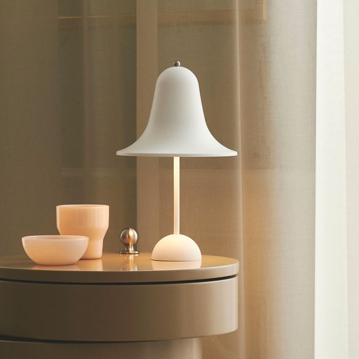 L'élégante ligne Pantop a été conçue par Verner Panton en 1980 et est depuis longtemps un incontournable de la collection Verpan. Pantop se caractérise par un abat-jour en forme de cloche largement évasé qui est monté avec l'ouverture vers le bas. Le nouveau Pantop Portable est une version moderne du design Pantop qui utilise des matériaux et des technologies modernes. Quelque chose que Panton lui-même a toujours recherché. Pantop Portable ajoute un niveau de facilité d'utilisation et de flexibilité qui vous permet d'emporter la lumière avec vous - d'une pièce à l'autre, ou même à l'extérieur dans le jardin ou sur le balcon, et de créer l'atmosphère souhaitée où que vous soyez. Avec sept heures d'autonomie, Pantop Portable vous permet de profiter de la flexibilité de la lumière pendant toute une soirée où il n'y a pas d'accès à l'électricité. Le gradateur à trois niveaux vous permet d'ajuster le niveau d'éclairage à l'atmosphère et au réglage souhaités.