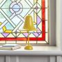 Matériaux : abat-jour en plastique injecté laqué, diffuseur en plastique opale, base chromée en métal et plastique, fer à cheval en silicone à la base.