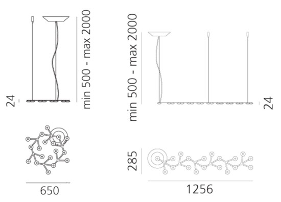 Sources (incluses) : Leds blanches 43W, 3000K, 2502lm pour le circulaire / 45W, 3000K, 2530lm pour le linéaire