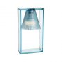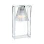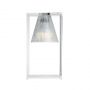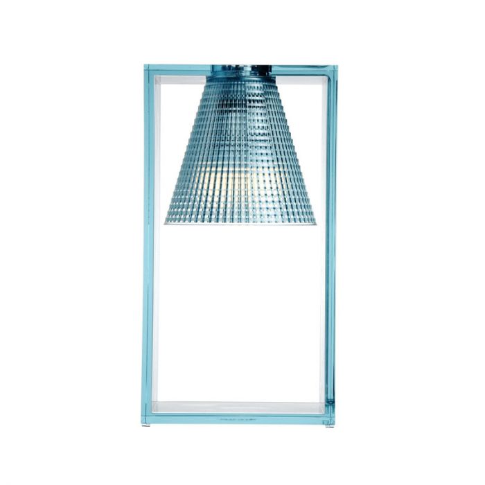 Light-Air, une lampe de table « illusionniste » dont la lumière suspendue échappe à la loi de la gravité, évolue en termes de fonctionnalité et d’esthétique. Essentielle, moderne et rationnelle, elle produit aussi un effet magique. Dans le modèle de table, sa structure dessine un fort signe graphique composé d'un cadre rectangulaire en technopolymère thermoplastique transparent ou teinté dans la masse. L'intérieur de celui-ci accueille une parabole conique qui s'enrichit aujourd'hui d'une nouvelle version à diffuseur sculpté dans la même matière plastique. Un modèle suspension inédit, entièrement de couleur cristal transparent à parabole sculptée et diffuseur conique revêtu de tissu plissé, vient s’ajouter à cette dernière version.