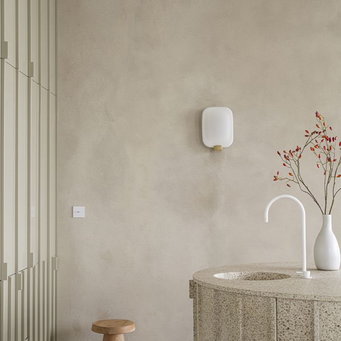 Light me tender de DCW par Patrick Jouin. Light me tender permet de faire varier la lumière et la matière. Nous voulions travailler l’univers de la salle de bain, propre à la temporalité du matin ou du soir. Une élégante lumière pour un objet qui joue avec l’intimité. Inspiré par les nuances de l’aube ou du crépuscule, Light me tender est une lumière douce qui nous révèle dans le miroir. S’attendrir, c’est s’éclairer. S’accepter, c’est varier la lumière. Le dessin est très simple, comme un unique nuage se détachant d’un ciel bleu. Initialement pensé pour la salle de bain, Light me tender peut néanmoins habiller un couloir ou une entrée.