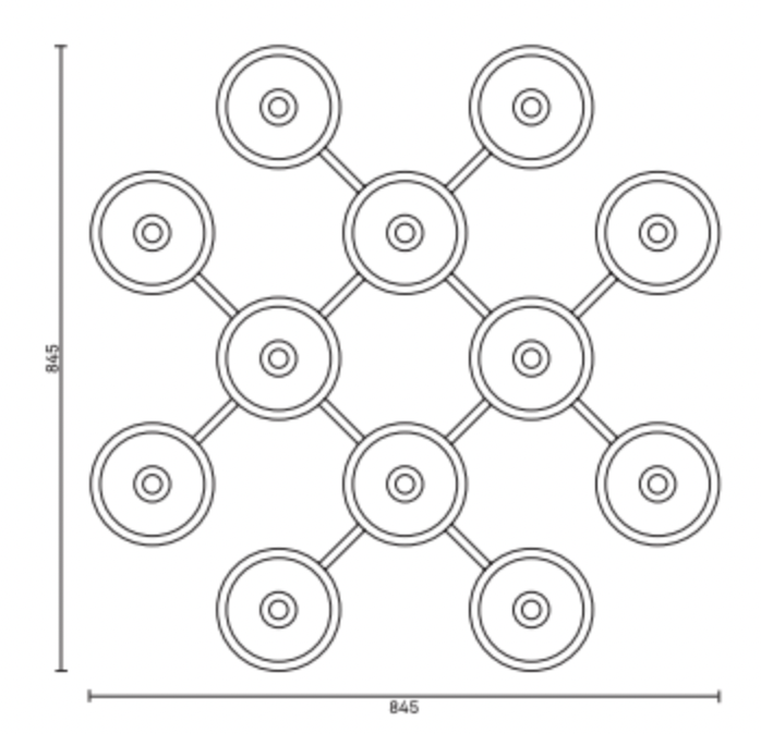 Sources : 12 x G9, 2.3W LED, 2700K, 180lm, 220-240V (non includes)