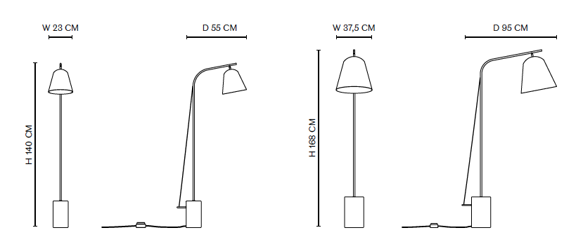 Fabriquée à la main avec une base en marbre véritable donnant à la lampe une base solide, la série Line s'inspire du Film Noir des années 40. Les caractéristiques de cette époque particulière sont représentées à travers la crudité, la silhouette claire, les lignes épurées et une lumière douce. Le lampadaire est composé d'un marbre brut non traité et d'une tige en laiton reliée à l'abat-jour en aluminium repoussé. La série Line est disponible en deux tailles et est disponible en versions suspendues.