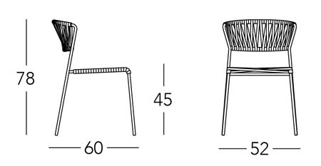 Les lacets de corde nautique rendent Lisa Filò résistante à la vie en plein air. La chaise et le fauteuil sont disponibles en cinq variantes de structure/couleur, afin de mettre en valeur les espaces publics et privés par leurs tissages.