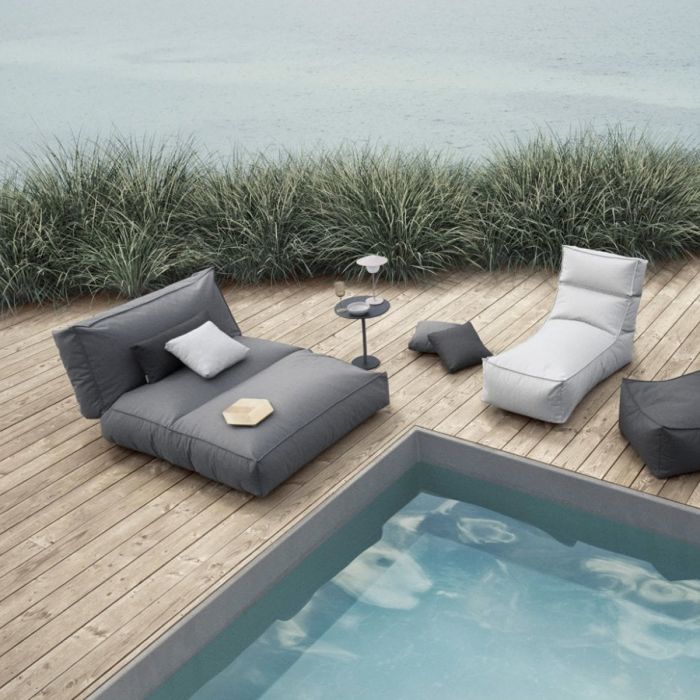 Confort extérieur. Le lit STAY invite à se détendre à l'extérieur et à profiter de la chaude saison. Cette large chaise longue extérieure, en matériau étanche, en gris pur, promet des moments de détente merveilleux. Le textile de qualité est par ailleurs facile à entretenir et résiste aux UV et intempéries. Le rembourrage de coussin, en perles EPS respectueuses de l'environnement, préserve la forme et le volume de la chaise longue. Si confortable que l'on ne veut plus se lever. Les matériaux étant légers, le lit peut facilement être transporté sur la terrasse ou dans la jardin. Le lit est disponible en version simple ainsi qu'en deux autres tons gris. Un pouf assorti à utiliser en tant que repose-pieds de la chaise longue, et des coussins douillets complètent cette gamme de meubles d'extérieur stylés.