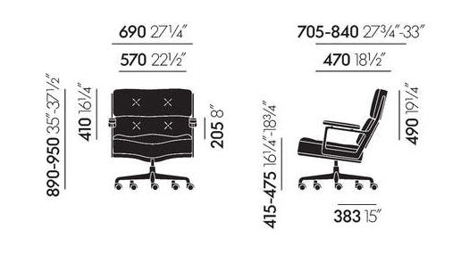 Le principe de construction du Lobby Chair (1960) offre un confort comparable à celui de la Lounge Chair. Le fauteuil est composé de trois éléments rembourrés qui sont reliés entre eux par des montants latéraux en aluminium. Les Lobby Chairs ont été conçus à l’origine pour l’aménagement du hall d’entrée du Rockefeller Center à New York. Les différentes versions qui ont vu le jour au cours des années suivantes ont en commun leur confort d’assise exceptionnel.