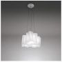 Pour compléter la gamme Logico System, voici la petite dernière, Logico suspension mini 3x120°, véritable sculpture de verre suspendue dans l'espace réalisée en verre soufflé, finition soyeuse. Cette finition consiste en un mélange de pâte de verre et de sels opalins répartis de manière non uniforme. Le bord inférieur du diffuseur est taillé au diamant. La structure est en métal vernissé.